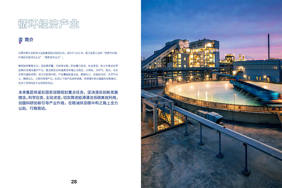 鄂爾多斯集團(tuán)的循環(huán)經(jīng)濟(jì)產(chǎn)業(yè),依托當(dāng)?shù)刎S富的資源,下轄煤、電、冶金、化工及園區(qū)綜合服務(wù)、供水、物流等產(chǎn)業(yè),精心打造囊括了煤炭采選、發(fā)電、鐵合金和氯堿化工產(chǎn)品的生產(chǎn)和銷售的一體化產(chǎn)業(yè)結(jié)構(gòu),形成國(guó)內(nèi)少有的“煤—電—硅鐵合金”和“煤-電-氯堿化工”等循環(huán)產(chǎn)業(yè)鏈。集團(tuán)目前是全球生產(chǎn)規(guī)模領(lǐng)先的硅鐵生產(chǎn)企業(yè);氯堿化工產(chǎn)品國(guó)內(nèi)市場(chǎng)占有率亦位居前列。