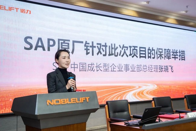 SAP中國(guó)成長(zhǎng)型企業(yè)事業(yè)部總經(jīng)理張曉飛代表SAP原廠發(fā)言,重點(diǎn)介紹了SAP為此次項(xiàng)目提供的全方位保障舉措。她強(qiáng)調(diào),SAP將全力支持諾力股份實(shí)現(xiàn)業(yè)務(wù)流程標(biāo)準(zhǔn)化、數(shù)據(jù)一體化與決策智能化,助力諾力構(gòu)建靈活、高效、智能的數(shù)字化運(yùn)營(yíng)體系。