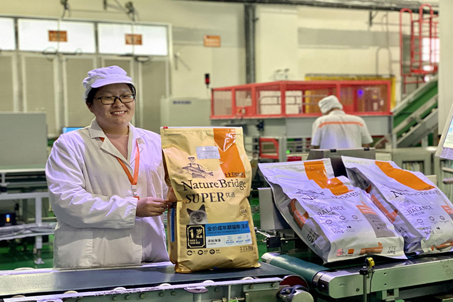 目前,比瑞吉擁有兩條固態(tài)寵物配合飼料生產(chǎn)線和一條半固態(tài)寵物配合飼料生產(chǎn)線,這些生產(chǎn)線均采用國際和國內(nèi)最先進的設(shè)備,確保了產(chǎn)品質(zhì)量的穩(wěn)定性和可靠性。固態(tài)寵物配合飼料生產(chǎn)線由自動配料系統(tǒng)、混合機、粉碎機、膨化機、噴涂機、振動篩等組成,產(chǎn)能達到5噸/小時;半固態(tài)寵物配合飼料生產(chǎn)線則與利樂公司合作,采用密封灌裝的利樂佳包裝技術(shù),日產(chǎn)能高達30噸。